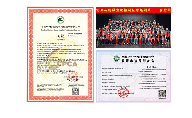 凱瑞蟲控擁有質量管理體系認證、環境管理體系認證、國家有害生物資質等各項證書